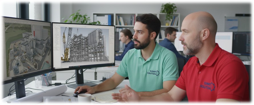 Chez Sunny Design & Solution, nous mettons notre expertise au service de vos projets industriels. Spécialisés dans une large gamme de prestations en ingénierie, nous accompagnons nos clients, de la conception à la réalisation sur site, pour transformer vos ambitions en succès concrets.